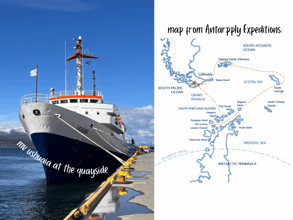 Antarpply Expeditions sails with MV Ushuaia, which has a max capacity of 90 guests on board. So it makes it an intimate experience and all of yous will get to go on the landings at the same time and you can also sail to South Georgia!