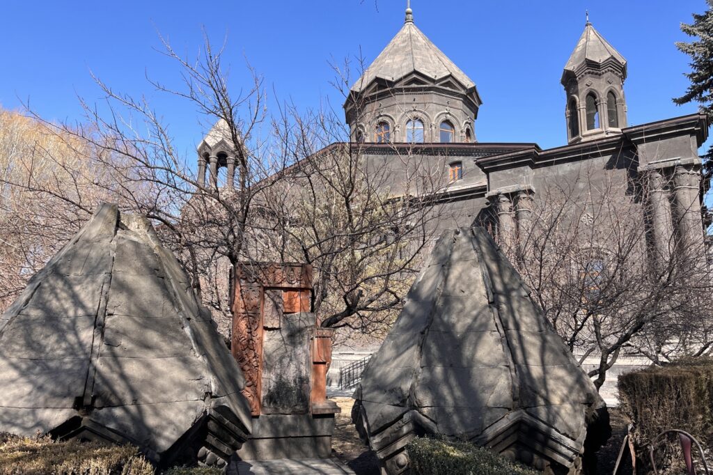 On 7th December 1988, Gyumri was hit with a powerful earthquake, registering 6.9 on the Richter scale. 25 000 lives were lost, injuring tens of thousands. Two churches on opposite sides of the square had collapsed and been destroyed. Both had been reconstructed. Remnants of their cone domes still lie outside of the entrances as a reminder of the lives lost. We were told about how Hermine wasn’t in Gyumri but she was in a different town and could still feel the shocks.